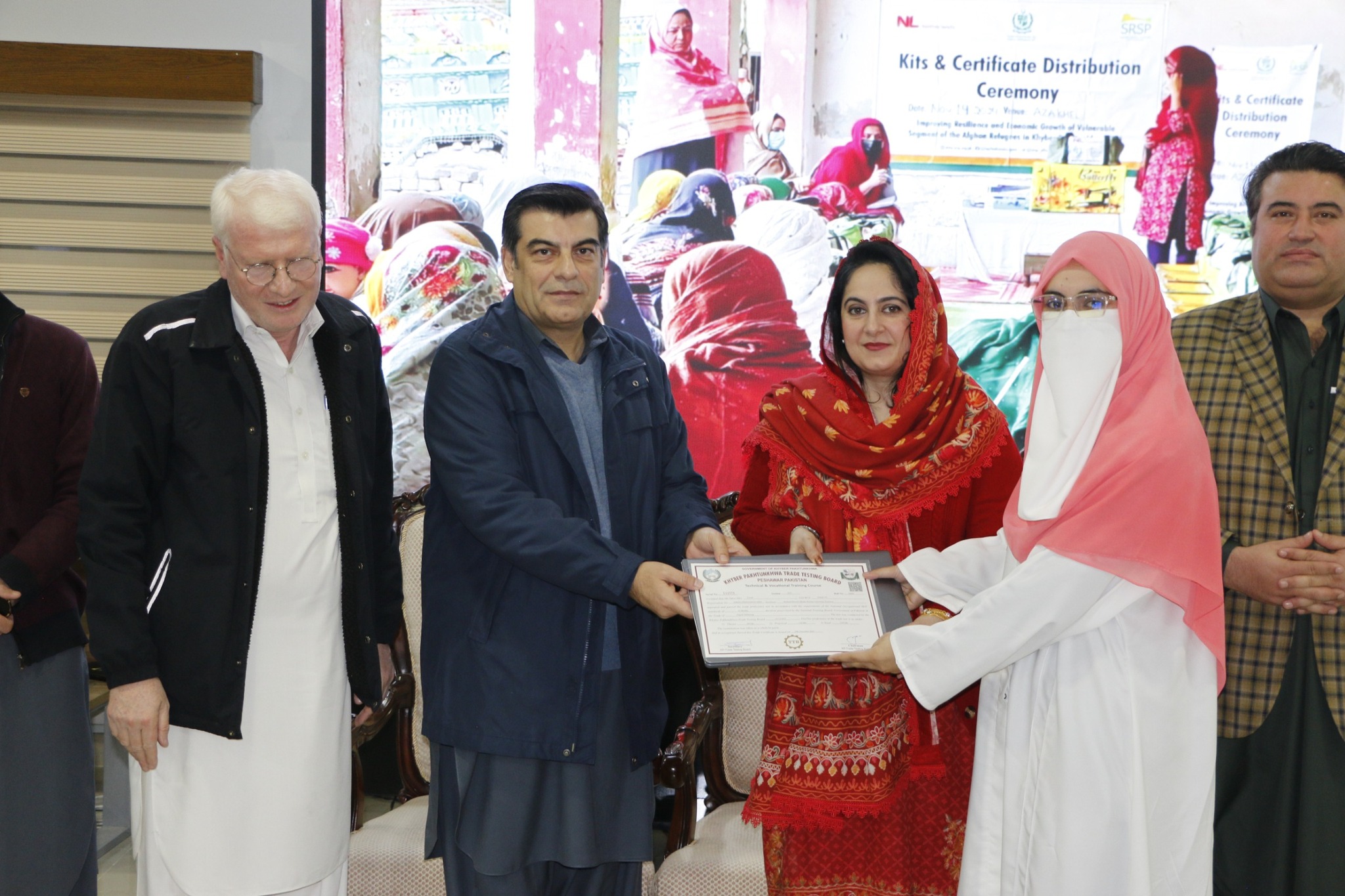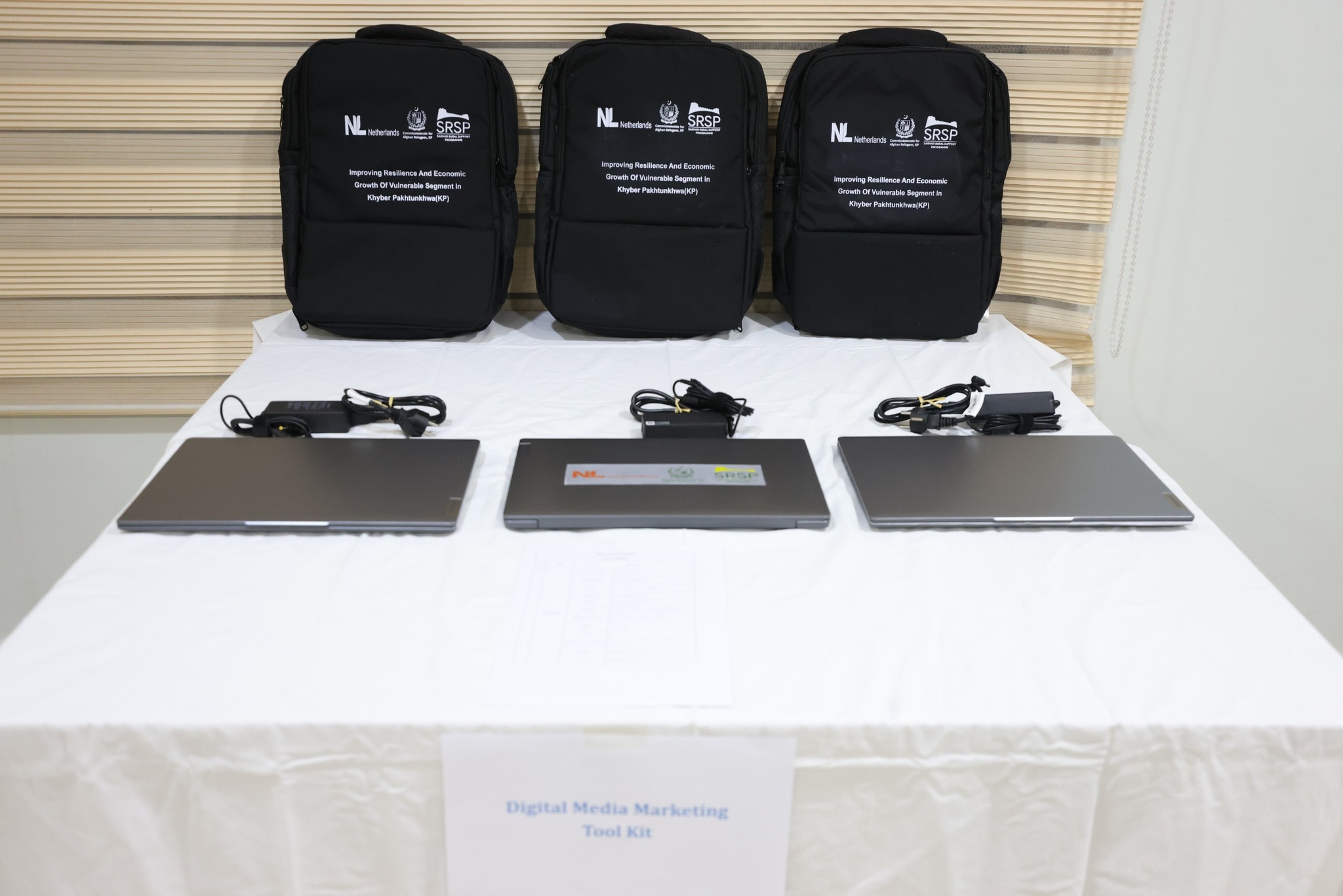 Today, SRSP organized a certificate and toolkit distribution ceremony in which 65 youth (both male and female) received certificates and toolkits after successfully completing technical and vocational skills training in Digital Media Marketing, Carpentry and CCTV Camera Installation and Repair. Among them, 33 graduates belonged to FDP communities from Peshawar, Nowshera, Swabi, Mardan, Haripur, Abbottabad, and Mansehra.